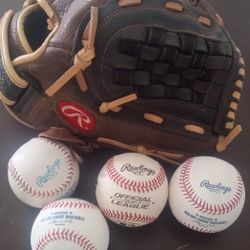 GUANTE RAWLINGS Y 4 PELOTAS RAWLINGS POR $40$40Phoenix, AZ