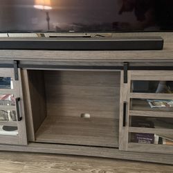 Gray wood TV stand sliding barn doors$150Phoenix, AZ