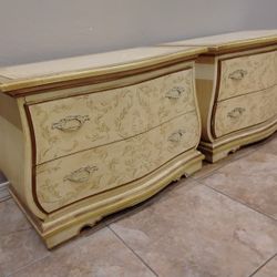 Vintage Pair of Heritage Venetian Style Hand Painted Bombe' Shaped Nightstands In Very Good Condition - 1960's Antique $400Goodyear, AZ