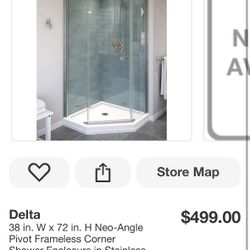 Delta 38 in. W x 72 in. H Neo-Angle Pivot Frameless Corner Shower Enclosure in Stainless with Clear Glass$250Phoenix, AZ