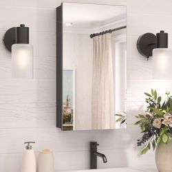 NIB 14x24 Bathroom Mirror with Storage Tempered, Aluminum Black Recessed Medicine Cabinet with Mirror Frameless Stepless Adjustable Shelf, Surface Mou$30Phoenix, AZ