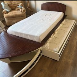 Real Wood Twin Size Boat Bed Frame with Trundle and 2 Like New Mattresses$300Phoenix, AZ