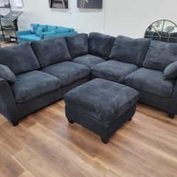 Brand New 3pc Sectional and Ottoman In Black Corduroy $479Phoenix, AZ