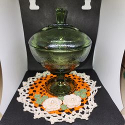 This item is a Hazel Atlas "Pebblestone " avocado green glass candy dish with a lid.$20Mesa, AZ
