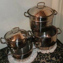 X6 LIKE NEW BELGIQUE STAINLESS STEEL XL STEAM PASTA STOCK POT STRAINER LID SET$60Queen Creek, AZ