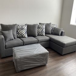 Living Spaces - Zoeller Charcoal Grey Fabric Sofa With Chaise$400Phoenix, AZ