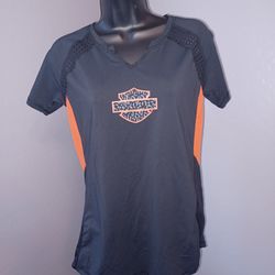 Harley-Davidson Black Orange Leopard Print Logo V-Neck Shirt Mesh Panels$40Sun City, AZ