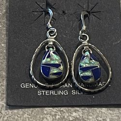 Southwest Sterling Silver Dangle Earrings Lapis and Opals$45Mesa, AZ