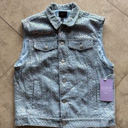 FOREVER 21 MEN Size Medium Blue All Over Sequin Jean Vest Mermaid Collection$30Laveen Village, AZ