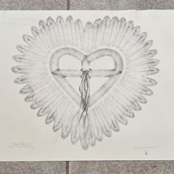 Darcy Marshall Sioux Native American Heart Cross Feathers Pencil Drawing 14x17"$100Scottsdale, AZ