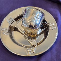 Godinger Silver Art Co. Child's plate, cup, and fork. Silver plated.$40Phoenix, AZ