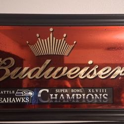 Last Seahawks Super bowl Bud wiser glass slash wood frame sign $160Laveen Village, AZ