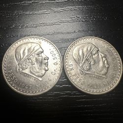 1947 And 1948 - Un Peso Mexican Silver Coins$50Phoenix, AZ