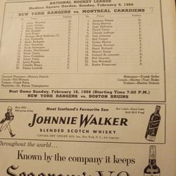 Vintage 1958 New York Rangers Program Versus Montreal Canadiens, Featuring Lorne"Gump"Worsley Picture $45Tolleson, AZ