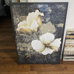 White Golden Florals Canvas Wall Art Wall Decor Flowers Decorations Home Interior Womens Furniture Floral Garden Home Decor $20Phoenix, AZ