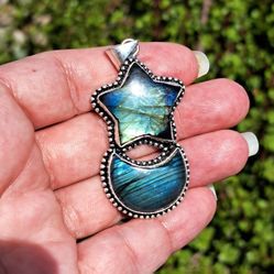 βͺοΈ Handmade | Labradorite Sun And Moon Pendant βͺοΈ$55Peoria, AZ