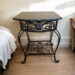 Gorgeous Vintage Bombay & Co. Wrought Iron Side Table W/Marble Granite Top & Custom Fitted Glass Shelf Insert For Bottom Allows For Displaying Items $250Phoenix, AZ