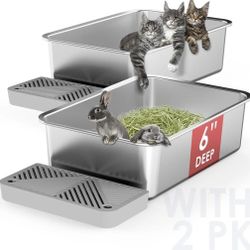 2 Pack 19.6"x13.7"x6" Stainless Steel Litter Box with 26L Litter Capacity, Large Cat Litter Box for Cats and Rabbits, Metal Kitty Litter Pan with Foot$20Avondale, AZ