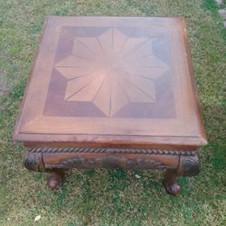 Antique solid oak parlor table with brass foo dogs and claw feet.$149Gilbert, AZ