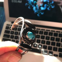 Navajo Silver With Beautiful Turquoise Inlet Wristband $275Glendale, AZ