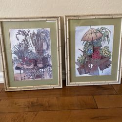 2 signed prints by Lawrence Reiter of “Garden potted plants” & “Flower cart.” Bamboo look wood frame$75Scottsdale, AZ