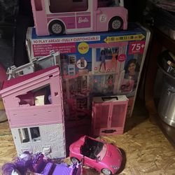 Barbie Dream House W/ Furniture/dolls/clothes/camper And Jeep $80Glendale, AZ