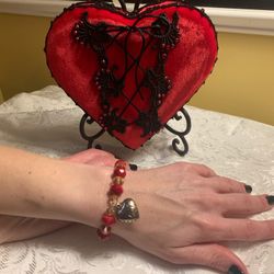 Red Glass Beaded Bracelets with Silver Double Heart Charm and Tassel$28Phoenix, AZ