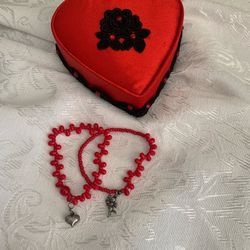 Red Coral Bracelets With Sterling Cupid & Heart Charms & Red Satin Heart Container $35Phoenix, AZ