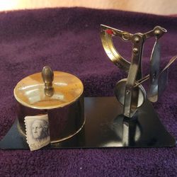 Vintage 60s Brass Postage Stamp Roll Holder / Dispenser / Letter Scale Desk Accessory - Japan$25Sun City, AZ