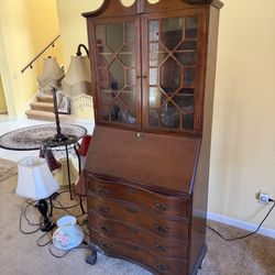 Vintage Secretary Desk with Glass Hutch – Solid Wood, Chippendale Style$225Chandler, AZ