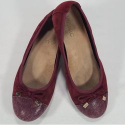 Vionic Minna Merlot Suede Reptile Cap Toe Ballet Flats Bow Detail Women Size 7$50Peoria, AZ
