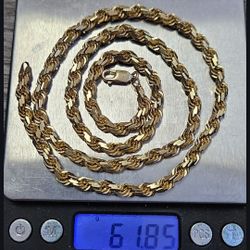 10k New Real Gold Solid Rope Chain 61.85 Grams 24 Inches Long .6mm$4,650Phoenix, AZ