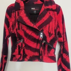 Miss Sixty Tie Dye Suede Leather Fringe Moto Motorcycle Jacket Red Black Sz XS$125Phoenix, AZ