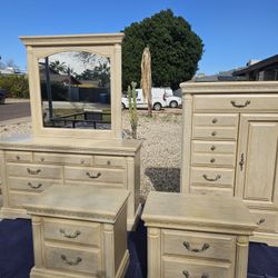 Whitewashed Oakwood 4 Peice Bedroom Set With Mirror$700Glendale, AZ