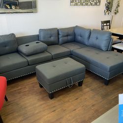 Gray Sectional With Storage Ottoman $489Glendale, AZ