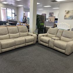 Power Reclining Sofa And Loveseat In Beige Performance Fabric $1,299Glendale, AZ
