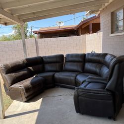 Chocolate Brown Leather Sectional With Recliner $1,500Laveen Village, AZ