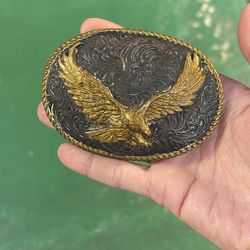 Vintage Crumrine Jewelers Heavy Silver Plate on Jewelers' Bronze Belt Buckle of an Eagle Made in USA $35Phoenix, AZ
