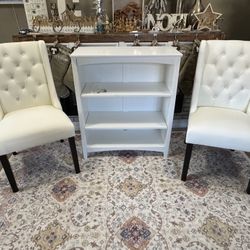 Gorgeous White tufted chairs and Small 36” bookshelf $160Sun City, AZ