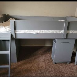 Twin Low Loft Bed Including Mattress , Desk,Stool, Bookcase & bins$300Guadalupe, AZ