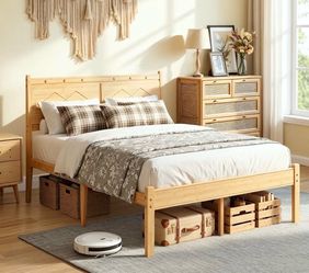 14 inch Bamboo Queen Bed Frame with Headboard, Light Cottagecore Solid Wood Platform Bed with Heavy Duty Metal Slats, No Box Spring Needed, Easy Assem$180Phoenix, AZ