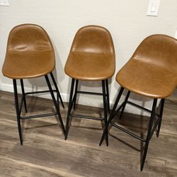 et of 3 Cognac Faux Leather Bar Stools — 30” Seat — Modern/Mid-Century$80Peoria, AZ