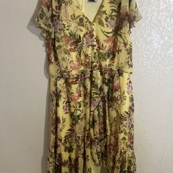 Maison Tara Yellow Floral Chiffon Flutter Sleeve High/Low dress SZ 22W$20Phoenix, AZ
