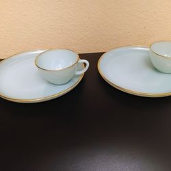3 Sets Of Fire King Azurite Turquoise Blue 22K Gold Rim Luncheon Sets $72Mesa, AZ