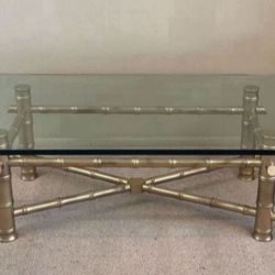Antique Vintage Mid Century Modern Hollywood Regency Gold Glam Thick Faux Bamboo Base Glass Top Coffee Cocktail Table$395Tempe, AZ
