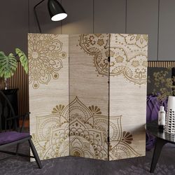 4 ft. Short Double Sided Mandala on Oak Canvas Folding Screen 3 Panel Freestanding Partition and Sep$100Tempe, AZ