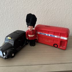 Vintage London Souvenir Lot Red Bus & Black Taxi Coin Banks + Queenâs Guard Doll UKâ$25Peoria, AZ