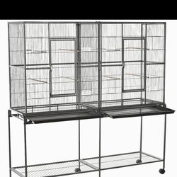Rolling 65"L Double Bird Cage~UNASSEMBLED~ w/ Storage Shelf Wood Perch Food Container$110Glendale, AZ