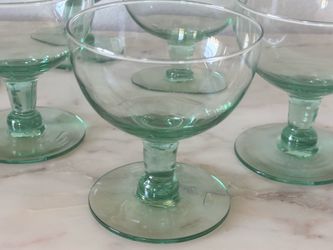 pair of vintage (likely 1970s-era) green cut-to-clear crystal wine glasses (or hock-style goblets) made in Poland.$35Chandler, AZ