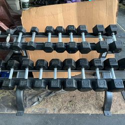 5-50lb hex rubber dumbbell set weights 550lbs with rack$650Mesa, AZ